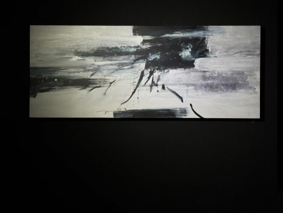 ——浓黑是夜的褶皱,浅灰是云的呼吸,而那些细碎的肌理里,藏着情绪未说尽的余韵。像是把一段沉默的情绪铺展在画布上,黑与白的拉扯间,每一道笔触都是心跳的纹路,不用具象的形状,却让所有情绪都有了栖身的褶皱。