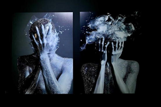 中的生存褶皱。画面中,银质闪光的躯体被透明塑料或塑封袋缠绕、包裹,双手