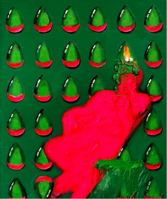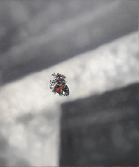 此作品李放是自 2020 年开始的“废品记”系列的延伸,将废品包装纸壳作品与布面油画相结合,形成新的图像语言,用“物”的材质感觉去透射心灵与感知的状态。思考的问题:在 AI 时代,作为碳基生命的人,将何去何从?