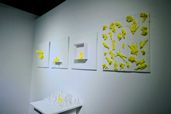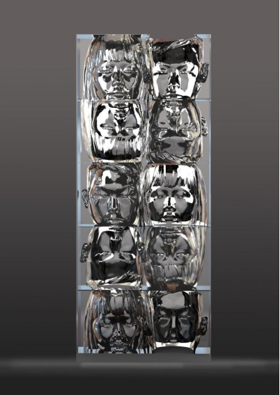 存在先于本质,首先真实世界存在着,出现于世界之中,然后融入数字化世界,在虚拟的界面中界定自己,成为所创造的非物质,虚拟世界中的形象与造型,就像这件透明树脂一样,正面和反面都能看到自身。