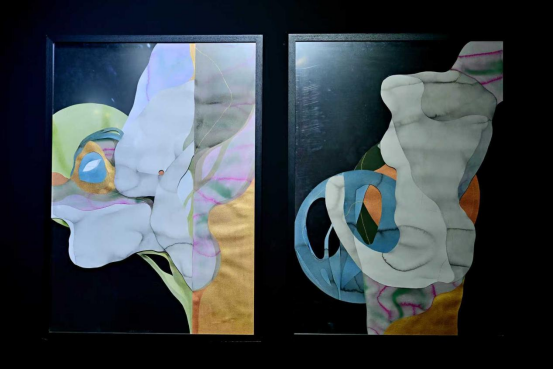 创作源自我的记忆切片,是对自然与生命之间交织的感受。人与自然界间慢慢成为一种对应关系,气候异变与物种消亡让我思考人类与自然生命之间的关系,我们同在一个星球,同样呼吸。我提取植物脉络以平面符号方式与立体纤维花朵组合,被平面化的鸟类是数字压缩后的形态,在花朵中似乎吮吸着花蜜,这仿佛是人类电子世界中逝去自由的精魂。异色叶片试图愈合这生硬的肢体,金色碎片斑驳陆离的覆盖在表层,秩序与无序,常态与非常态,真实与虚幻,生命与消亡,我将它们在这一时空中同置,拼凑出一个个不和谐的装饰体,这一组生硬组合,恰恰是为了呈现那种我们已习以为常的、美丽的支离破碎(自然生态与人类之间的博弈)。此次创作作品拒绝浪漫化的自然崇拜,转而呈现一种