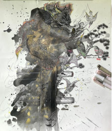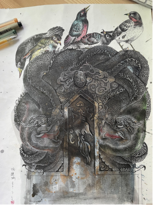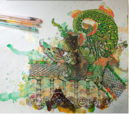 龙生九子之螭吻/作品材质:丙烯/作品尺寸: 375×344mm/创作年代:2020.7.10