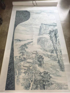 以花青敷色如青花瓷釉上挥毫,清雅致韵间,尽展都江堰治水智慧的千年神韵。笔底先摹岷江气象,花青浓淡层叠,皴擦出崖壁苍劲与流水灵动;复绘都江堰古建群落,飞檐翘角于林木间错落,似见古蜀先民治水智慧在山水间永续流转。花青墨色如瓷釉开片,于水墨中显层次、拓意境,将天府之源的山魂水魄、古建风华凝于绢素。其山水幽远、古建精巧,既藏 “道法自然” 的治水哲学,又借花青雅致赋予传统山水青花瓷般的典雅气韵,让天府文明根脉在水墨与瓷韵的交融里,悠悠传续。