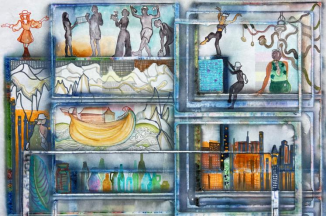 杨丙亮如此描述着他的作品:“当虫儿沉浸在自己世界之中时,却忘记了外面另一个世界,而今我在试图画另一个世界,一个即自由而又充实的世界。” 对生命的思考来源于艺术家小时候的记忆,之后万物的消损都能刺激到艺术家的心灵,并始终相信存在着与我们现实世界相对的另外世界。这正是他画面关于多维世界的追问,正如入世的我们拼命来完成对生活的追问,却总是忘却生命本真的意义。