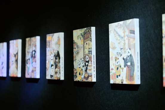 使用ai创作的画面,巧妙地融合了中国传统工笔绘画的技法,细腻精致地勾勒出亭台楼阁、小桥流水的场景画面,也将天府之国的自由浪漫的气息融入画面,ai画面色彩古朴典雅,尽显东方美学韵味。熊猫的形象被赋予传统民族服饰,或长袍马褂,或襦裙钗环,与十二月市的具体场景融合,在地性地表达了每个月市场景,如灯笼、折扇、花卉、等……传统器物,再巧妙地融入古蜀纹饰,让作品更具天府之国的特色。