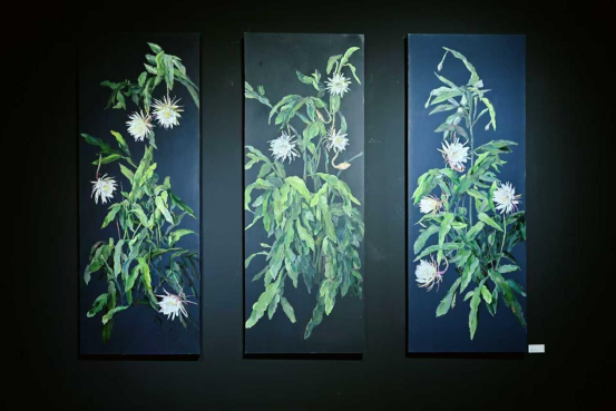 《白昙》布面油画 195x73cm x3幅 李耘燕2023.11