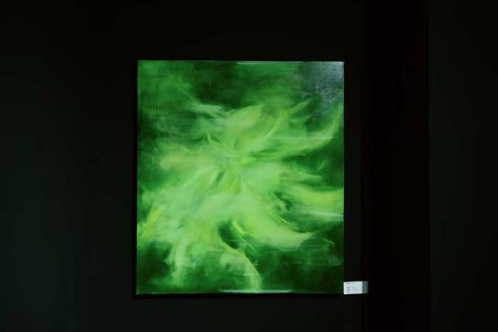 这幅《氤绿》作品,是⼀场在画布上进⾏的、关于⽣命本质的光合作用。艺术家