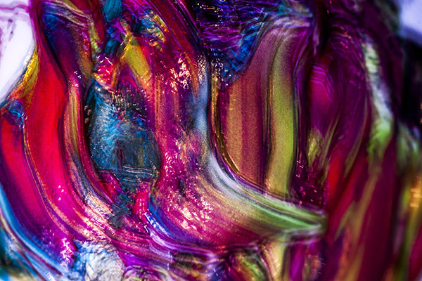 得到他再次确定的答复后,我的眼睛在作品上巡游,内心却莫名地沉静了下来,若秋水一湖,微风不起,水波不兴,仿佛其中有一种按住躁动的力量。然而,顷刻之后,又仿佛有什么穿过眼睛投进心湖中,随即湖中升起:似音乐、似火焰、似广袤森林,更有金属相击之声、流星划过之迷,甚至海底漩涡、宇宙黑洞、暗物质等等,一种不可名状的激扬情绪在内心纠缠、碰撞、搏斗、挣扎。转而,再次归于宁静与秩序,眼前一片澄明。如果说他的光绘摄影是一杯热情四溢的卡布其诺,这组作品则是一次对苦咖啡情有独钟式的阅读体验,令人陶醉于一种冷艳之中欲罢不能。