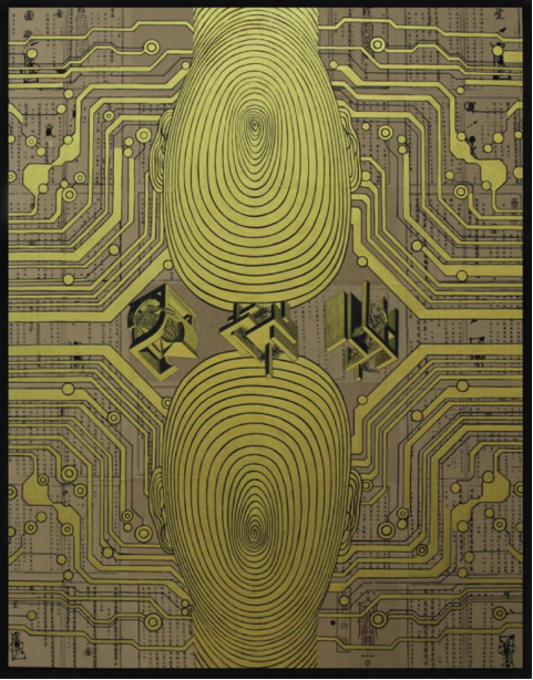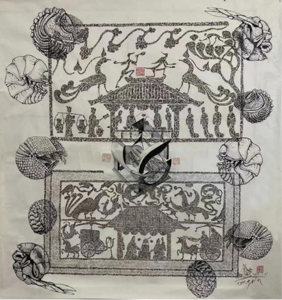 (苍鑫 人脸合成系列 宣纸设金2021年 尺寸175*141)
