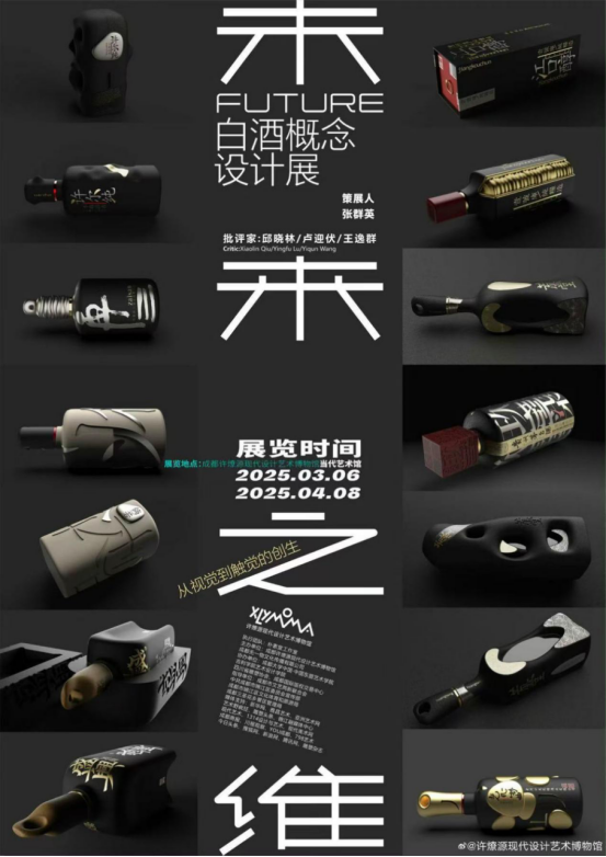 2025年成都许燎源博物馆“未来之维”白酒概念设计展,该展览以探索白酒设计的未来可能性为核心,延续许燎源“物感主义”理念,通过装置艺术、数字媒介与概念包装等多元形式,打破传统酒类设计的符号化框架,重构艺术与生活的感性连接。