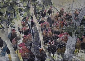 在家乡中江县采风写生中,在养殖鸡场感受到繁荣兴旺的场景和忙碌的人们,感受到农场兴旺的喜悦氛围,描绘老百姓的辛勤付出,将要收获的幸福和快乐。
